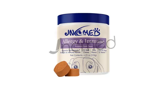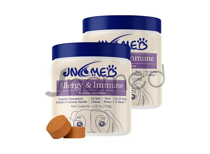 [Pet Allergy Relief Soft Chews] To help your dog cope with seasonal allergies, we introduce our professional-grade pet allergy relief soft chewables. This product features a core of triple-action high-activity probiotics, specially formulated with colostrum and prebiotics FOS/GOS to scientifically establish a balanced gut microbiome, strengthening the immune barrier from the source and alleviating paw licking, skin itching, and ear odor caused by allergies. The formula also incorporates borage oil and deep-sea krill oil, providing high-quality Omega-3 (EPA/DHA) and vitamin E to nourish skin health and reduce inflammatory responses. One delicious pork-flavored chewable a day provides comprehensive gut, immune, and skin support for your beloved pet, making it the ideal nutritional supplement for a comfortable life for your dog.