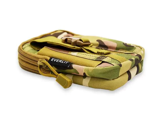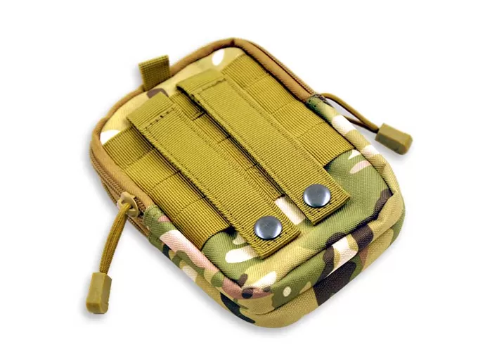 The outdoor survival kit is constructed from durable, double-layer 600D military-grade nylon. It can be customized with attachment straps and adjustable quick-release buckles for easy mounting on tactical belts, backpacks, or even vehicles like motorcycles, trucks, and off-road vehicles.