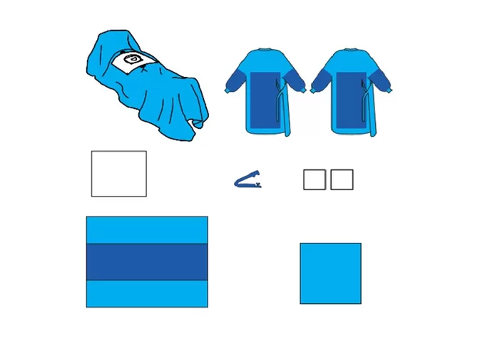 Disposable gowns and gloves for the surgical team to maintain aseptic conditions.