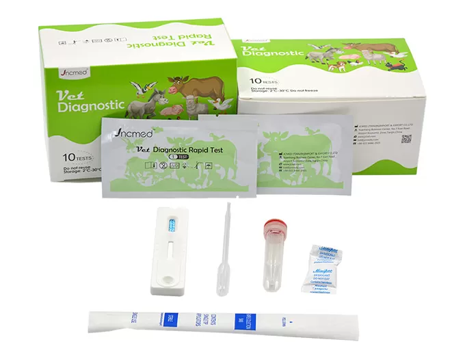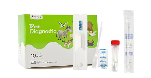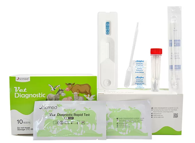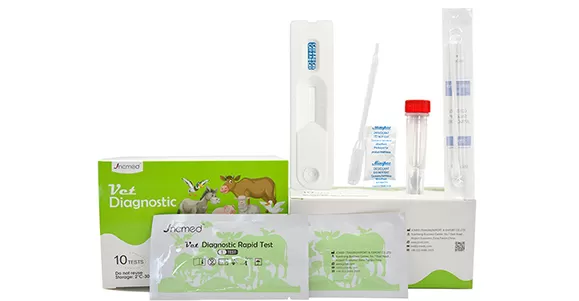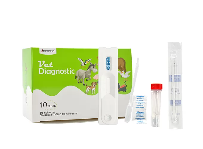 Canine adenovirus (CAV) is one of the most pathogenic mammalian adenoviruses, and is divided into two serotypes, type I and type II. Type I virus can cause canine infectious hepatitis, manifested as acute sepsis, central necrosis of liver lobule and intranuclear inclusion formation of hepatocytes, and can also cause fox encephalitis. Type II virus mainly causes canine infectious laryngotracheitis and enteritis. This test kit is designed for rapid screening of canine adenovirus infection and is suitable for detecting CAV antigens in canine eye secretions, nasal fluid, saliva and vomitus, helping veterinarians to diagnose and prevent diseases in a timely manner.