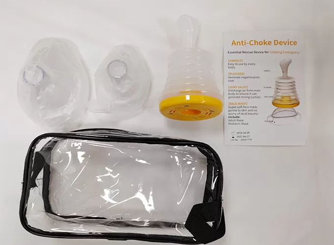 Emergency Choking Rescue Device is an innovative first aid device designed for emergency situations with airway obstruction in children and adults. It uses non-invasive suction technology to quickly and safely remove food or foreign objects stuck in the airway, effectively avoiding the danger of suffocation. The device is easy to operate. Just cover the mouth and nose to form a seal, push and pull the handle to generate suction, and the whole process takes only a few seconds, making it very suitable for use in emergency situations.