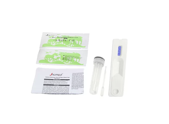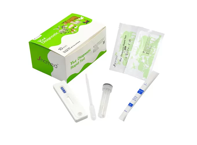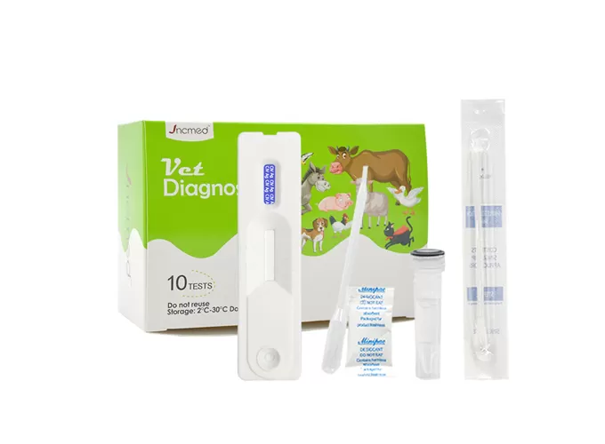 The kit has the characteristics of high accuracy, high specificity and rapid detection. It is not only suitable for nasal secretions, but also can be used for the detection of eye and anal secretions, providing a reliable tool for early screening and prevention and control of canine influenza. With its convenience and efficiency, this kit has become an ideal choice for pet owners and veterinarians.