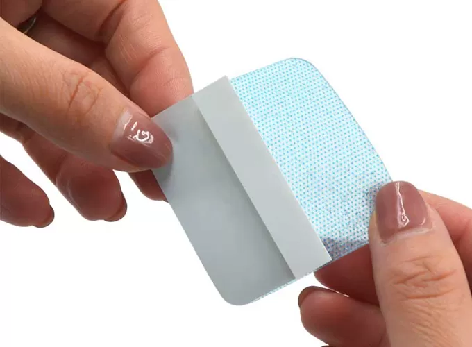 Fitting and fixing: tear off the backing paper, gently fit the gel surface to the wound, avoid pulling or wrinkling, and gently press the edge to make it fit the skin tightly.