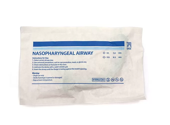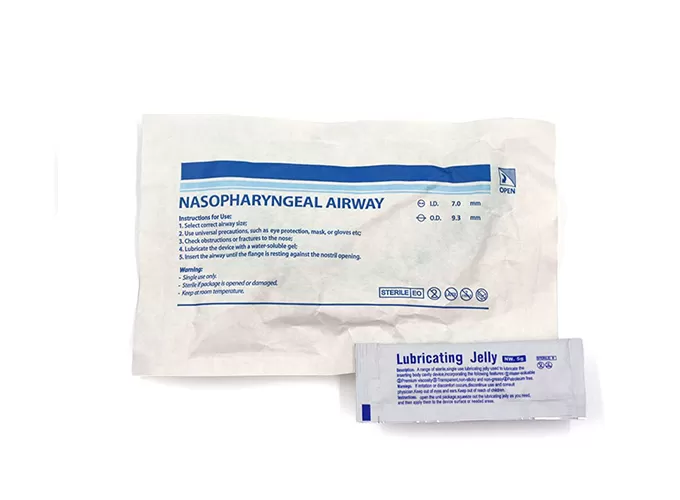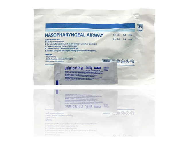 The nasopharyngeal airway is an artificial airway device designed to be inserted into the patient's nasal cavity, mainly used to maintain airway patency during emergency situations or medical procedures. Its unique flared end design effectively prevents the tube from sliding completely into the nasal cavity, ensuring that the device is always in a safe position. The tube is made of medical-grade soft latex-free plastic material, with a round tip and flexible tube body, which can achieve gentle insertion and maximize patient comfort.