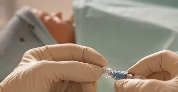 Connecting the syringe/infusion set: Insert the needleless connector into the infusion tube or syringe to ensure a tight connection.