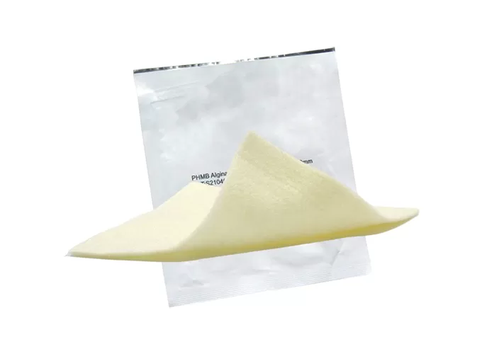 PHMB Antibacterial Alginate Dressing is a sterile, single-use dressing consisting of calcium alginate fiber treatedwith polyhexamethylene biguanide (PHMB) , which is a brand new advanced wound care product. It solves thepassivated problem of chemical reaction between alginate and PHMB, which provides safe and good 7-dayantimicrobial activities for infected wounds. This dressing not only has alginate property of providing moistwound environment, but also offers PHMB advantage of highly effective safety. Suitable for burns, ulcers, postoperative incisions and wounds at high risk of infection. Its mild properties reduce inflammatory response and improve patient comfort, making it an ideal choice for clinical and home wound care. With its safety and high efficiency, PHMB dressing has become an important solution for modern wound management.
