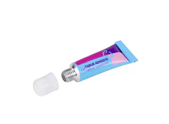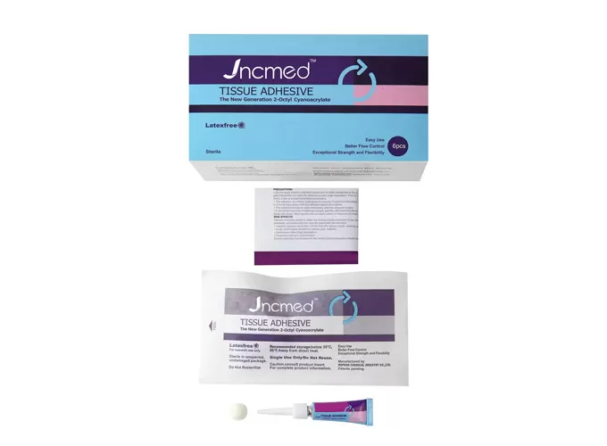 The innovative medical tissue adhesive is a safe and efficient seamless closure solution. Its main component is n-butyl cyanoacrylate, which is an efficient and safe liquid skin wound closure material. When it comes into contact with moisture on the wound surface, the adhesive quickly polymerizes and solidifies to form a flexible protective film that tightly adheres to the wound edge, replacing traditional sutures and promoting healing.