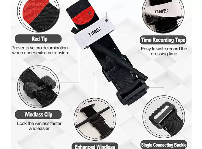 This tourniquet is made of lightweight and durable nylon. It is extremely light and compact, and can be easily put into a pocket, backpack or first aid kit. It is suitable for outdoor adventures, military operations, industrial operations and other high-risk scenes. Its all-black appearance is low-key and practical, meeting the concealment requirements of tactical equipment. The design of the CAT tourniquet strictly follows the battlefield first aid standards. After professional testing and verification, it can play a key role in limb trauma or severe bleeding.
